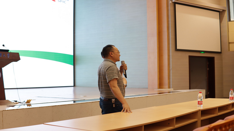 在冉经理的介绍结束后,聂华先生的讲座在大家热烈的掌声中开始了。他首先介绍了国家电投的发展概况。截止2021年3月底国家电投清洁能源装机占比57.0%,其中光伏装机3218万千瓦,核电698万千瓦,风电3140万千瓦,水电2399万千瓦。从具备电力勘察设计建设能力的山东电力工程咨询院和点亮中国第一盏的上海电力公司;再到独立自主研发设计中国大陆第一座核电站的上海核工程研究设计院和中国历史上有名的平玗、姚孟电厂;最后到承担国家三代核电自主化任务的国家核电技术公司和电改后全品种发电的中国电力投资集团强强联手,国家电投筚路蓝缕,留下一路芳华与赞歌,树立起一座座伟大的丰碑,最后在中国乃至世界的舞台上大放异彩。